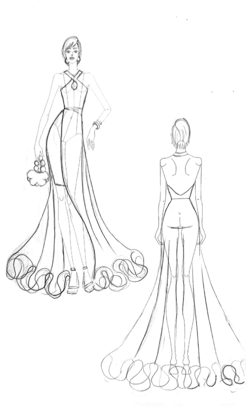The personalized design process begins with a consultation where Christine discusses your ideas, fabrics, and design preferences. After sketching and finalizing the design, fittings are arranged to ensure the perfect fit and finish.